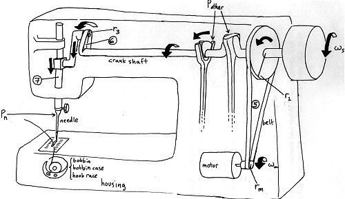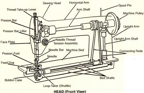 "तर हे शिवणयंत्र. याला एक खास पुढे भोक असलेली सुई वापरतात त्यात दोरा घातलेला असतो. हा दोरा इथे वरच्या रिळातून येतो. ही सुईच्या खालची चीर असलेली पट्टी पाहिलीस? याला हवंतर कपड्याची धावपट्टी म्हणता येईल. त्याच्या खाली अजून एक छोटंसं रीळ असतं त्याला बॉबिन म्हणतात. बॉबिनीवर मुख्य रिळावरच्या रंगाचाच दोराचा असतो. ही सुई या आतल्या उभ्या दांड्याला आणि तो एका आडव्या दांड्याला जोडलेला असतो. हे चित्र बघ म्हणजे समजेल तुला"