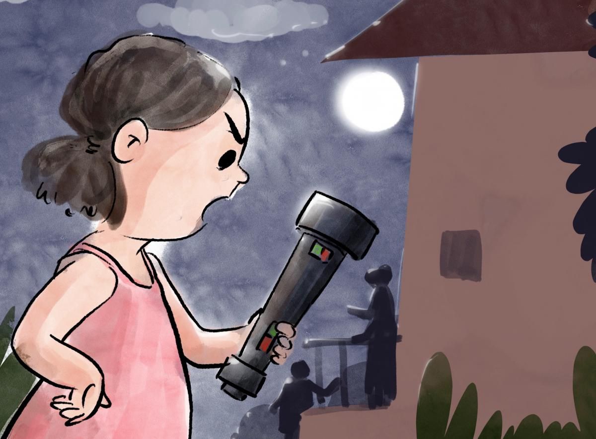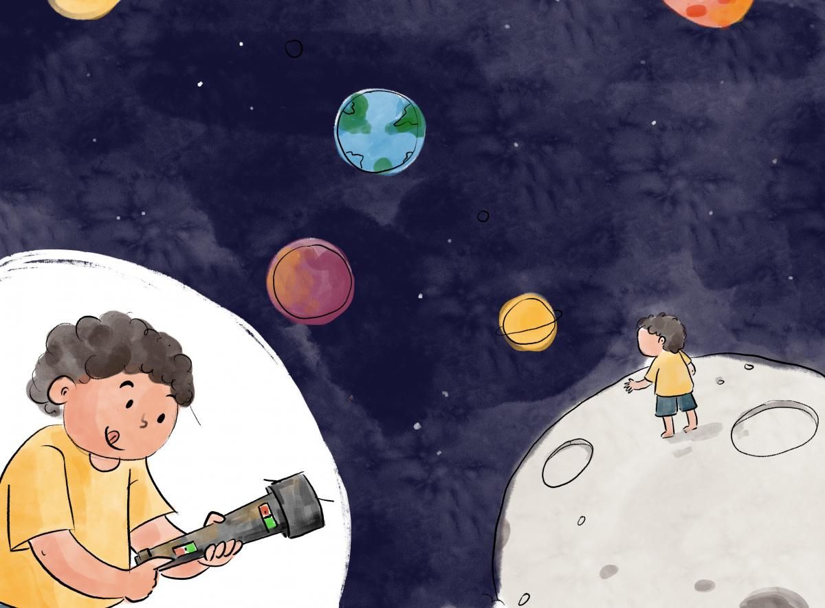 दुर्बीण अलफाजला म्हणाली, “इथे बघ खाली, मला दोन बटन आहेत. एक लाल आणि एक हिरवं. त्यातलं लाल बटन दाबलंस तर तुला चंद्र अजून जवळ दिसेल.”