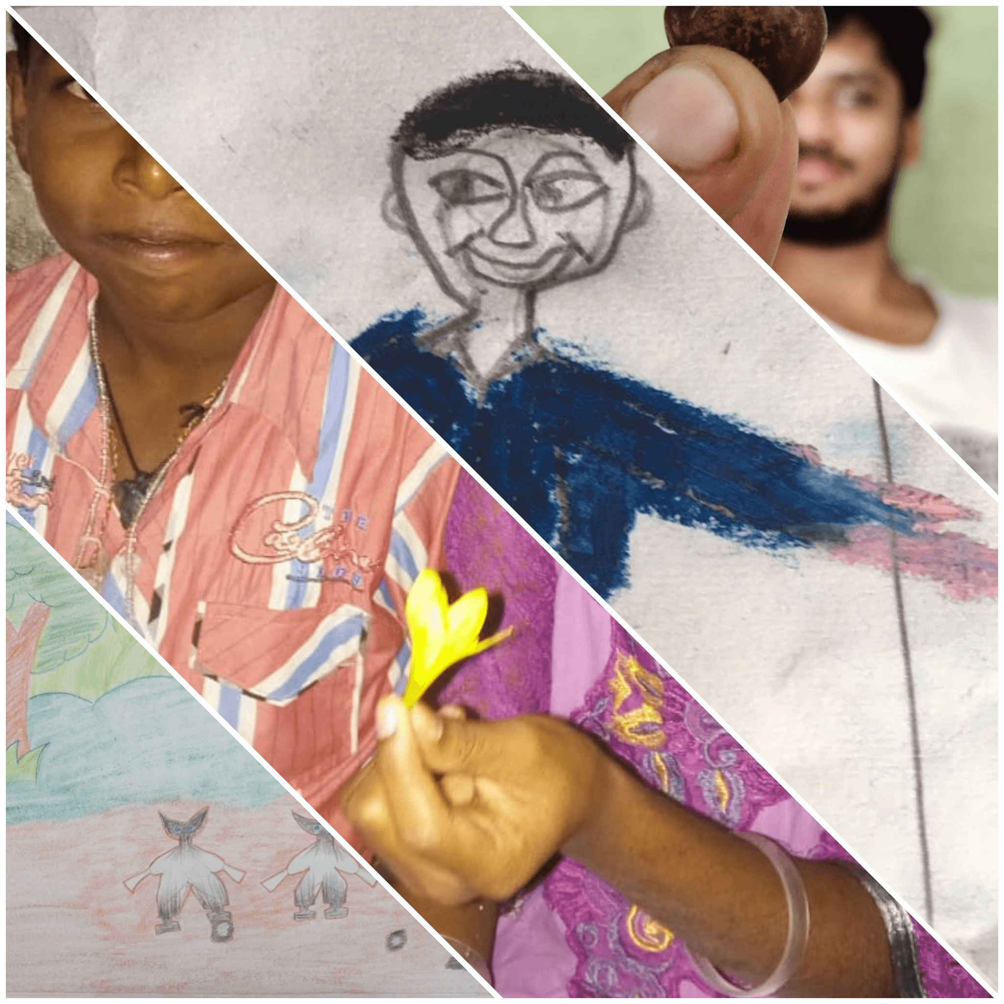 सोनाळ्यातील मुलांनी ज्या वस्तूंवरून या गोष्टी लिहिल्या त्यांचेही फोटो तुम्हाला दिसतील आणि या गोष्टी वाचून काही लहान मुलांनी चित्रेही काढली आहेत तिही सोबत देणार आहोत.