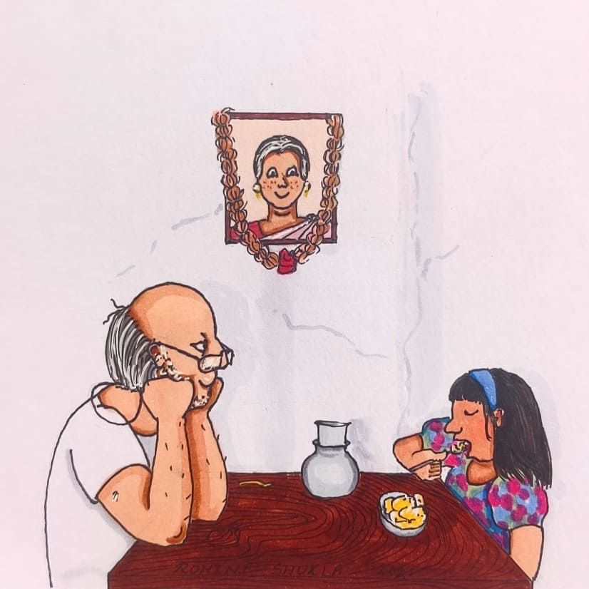 आजोबांनी चमकून पाहिलं स्वराकडे. काही बोलले नाहीत. डब्यातलं थालीपीठ खात राहिले. स्वराला एकदम आपण ‘काहीतरी चुकीचं बोललो का?’ असं वाटू लागलं. ती काहीच बोलली नाही. आजोबांचा डबा खाऊन झाला. स्वरा “दुपारी येते परत" इतकंच बोलून डबा घेऊन निघून गेली.