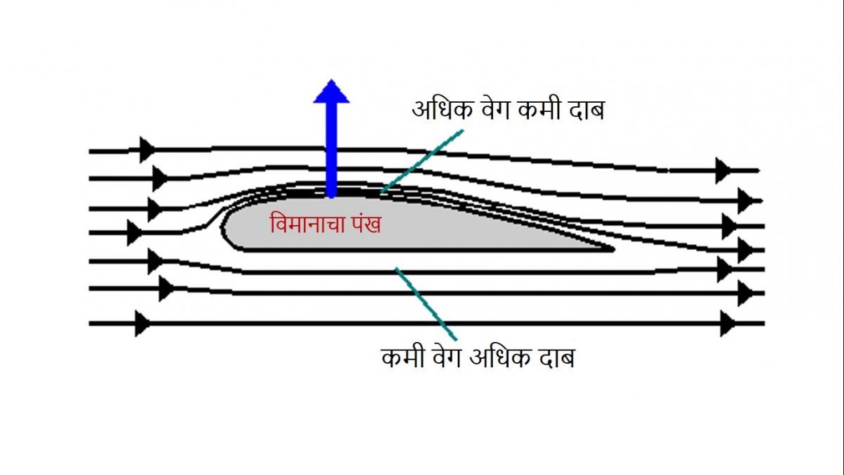 पंखाखालून वाहणाऱ्या हवेचा दाब जेव्हा पंखावरून धावणाऱ्या हवेपेक्षा जास्ती होतो, तेव्हा विमान वर उचललं जाण्याची शक्यता निर्माण होते. विमानाच्या वजनापेक्षा हा दाब अधिक असला पाहिजे. विमानाच्या पंखाच्या वक्राकार भागाची लांबी पंखाखालील सरळ भागापेक्षा जास्त असते. त्यामुळे पंखावरील हवेला अधिक अंतर कापावं लागते. साहजिकच त्याचा वेग वाढतो. वायूंच्या गुणधर्मानुसार पंख्यावरील अधिक वेगाने धावणारी हवा, कमी दाबाचा पट्टा तयार करते. साहजिकच पंखाखालून वाहणाऱ्या हवेचा दाब अधिक असतो. हा दाब जेव्हा विमानाच्या वजनापेक्षा अधिक होतो, तेव्हा विमान वर उचललं जातं. विमानाला वर उचलणारी शक्ती जेव्हा विमानाच्या वजनाइतकी असते तेव्हा विमान हवेत स्थिर राहते. पंखांवरून जाणाऱ्या हवेचा वेग वाढवला की, विमानाला उचलणारी शक्ती वाढते आणि विमान आकाशात अधिक वर जाते. विमानाला उचलणारे बल जेव्हा विमानाच्या वजनापेक्षा कमी होते, तेव्हा विमान खाली येते. अर्थात विमानाला उडताना हवेच्या घर्षणाला तोंड द्यावे लागते. कोल्होबा, किटी हॉक येथे साध्या ‘फ्लायर’ विमानाने सुरु झालेल्या प्रवासाने प्रगतीचे अनेक टप्पे पार केले आहेत. आता माणूस अंतराळात भराऱ्या घेतो आहे. द्राक्ष आंबट आहेत असं म्हणून हताश न होता प्रगतीशील असणं अधिक महत्त्वाचं आहे.”