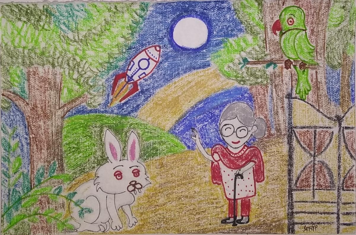 “आजी, तिथे हवा नाही, झाडी नाहीत, म्हणजे खूप उकडत असेल.”, सशाने विचारलं.