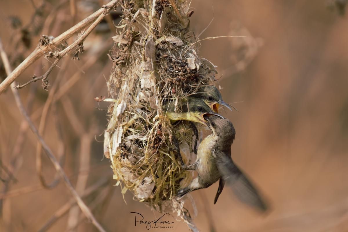 या पक्ष्याचे आणखी एक सुंदर छायाचित्र, छायाचित्रकार श्री पराग खरे यांनी पाठवले आहे. यात पक्ष्याचे वैशिष्ट्यपूर्ण घरटे, पिल्ले आणि पक्षी सगळेच टिपले आहे: