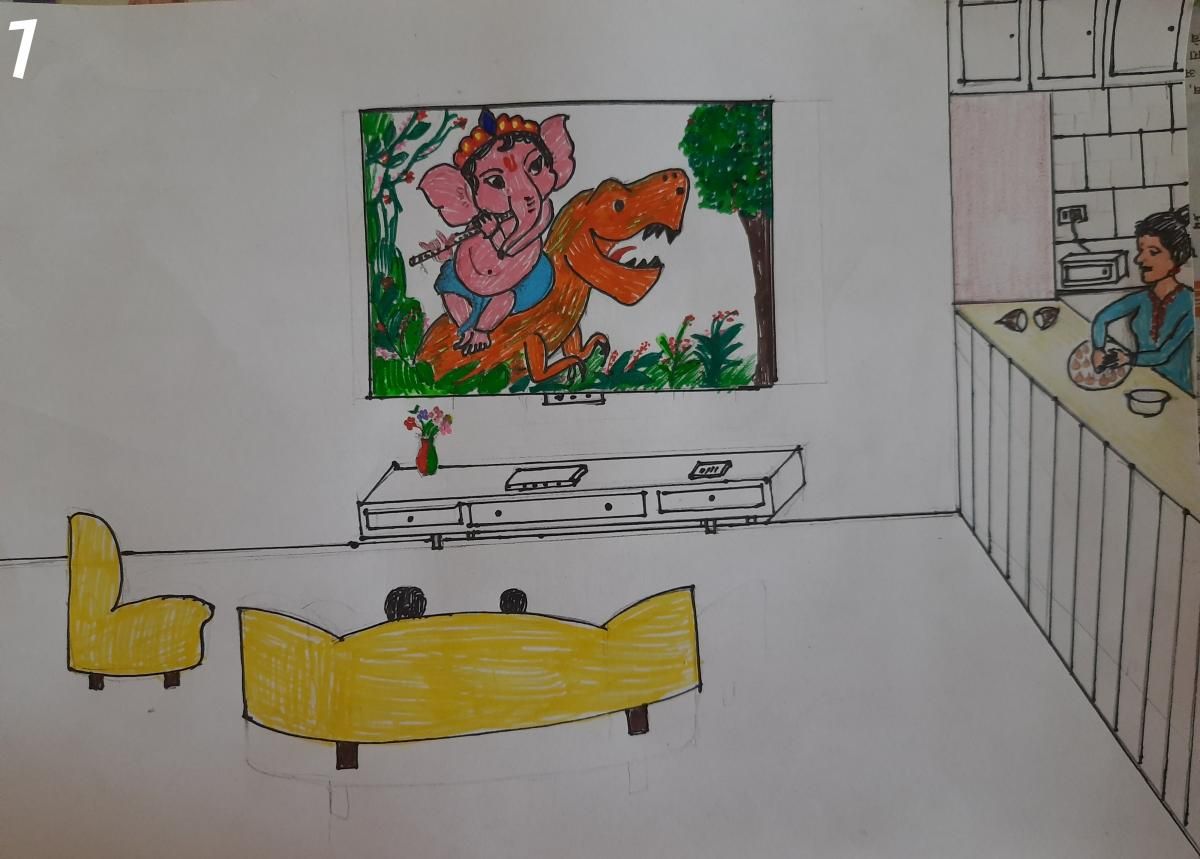 आज गणेशोत्सवाचा शेवटचा दिवस होता. बबू आणि त्याचा दादा नुकतेच सोसायटीच्या गणपतीची मिरवणूक संपवून घरी आले होते. दंगा करून दमलेले दोघं आता टीव्ही वर मिरवणूक बघण्यात रमले होते.