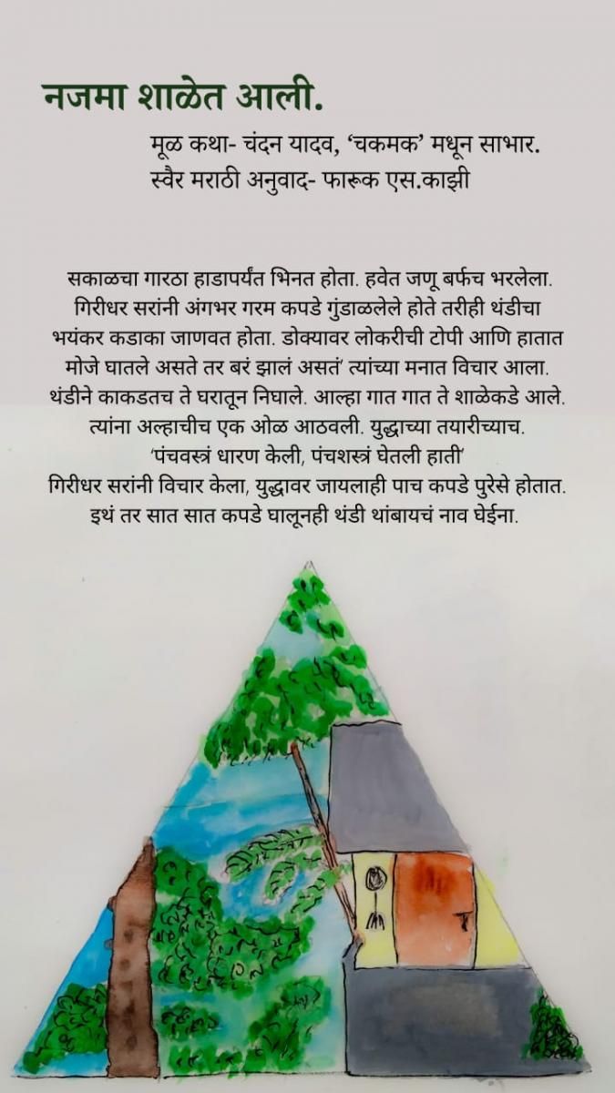 भोज्जा/लेख/गोष्टंबिष्टंगोष्टंबिष्टंताई दादा (११-१२ वर्षांपुढील)नजमा शाळेत आली (कथा)5 जून 2021 नजमा शाळेत आली (कथा)लेखन: चंदन यादव ('चकमक'मधून साभार)स्वैर अनुवाद: फारुक एस. काझीचित्र: कल्पेश समेळ हा लेख शेअर करा:मागील लेखअलफाजची दुर्बीण (कथा)पुढील लेखछोटा बाहुबली (कथा)संबंधित लेखभटोबा (गोष्ट)15 डिसेंबर 2022ठेवा (दिवाळी अंक)13 सप्टेंबर 2022झाडं चालायची थांबली (लोककथा)14 जानेवारी 2023खळाळता अवखळ झरा (कथा)1 मे 2022