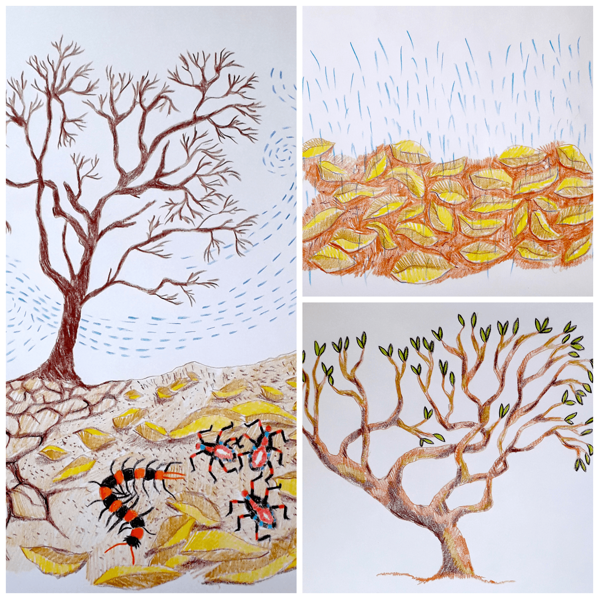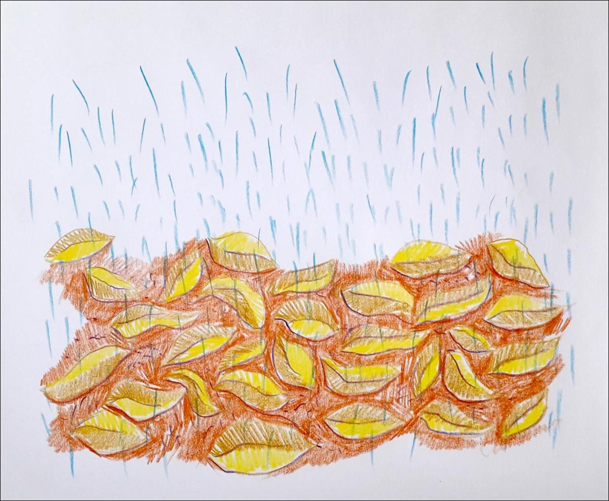 “म्हणजे आभाळातून पाणी पडायला लागतं. एकदा सुरू झाला की ४ महिने पाऊस पडत राहतो. ही सगळी खाली पडलेली पानं आहेत ना, त्या पाण्यामुळे ही पानं तुटतील, त्यांचे छोटे छोटे तुकडे होतील, आणि हळूहळू ती मातीत मिसळून जातील. आणि हे दरवर्षी होतंच राहणार”.