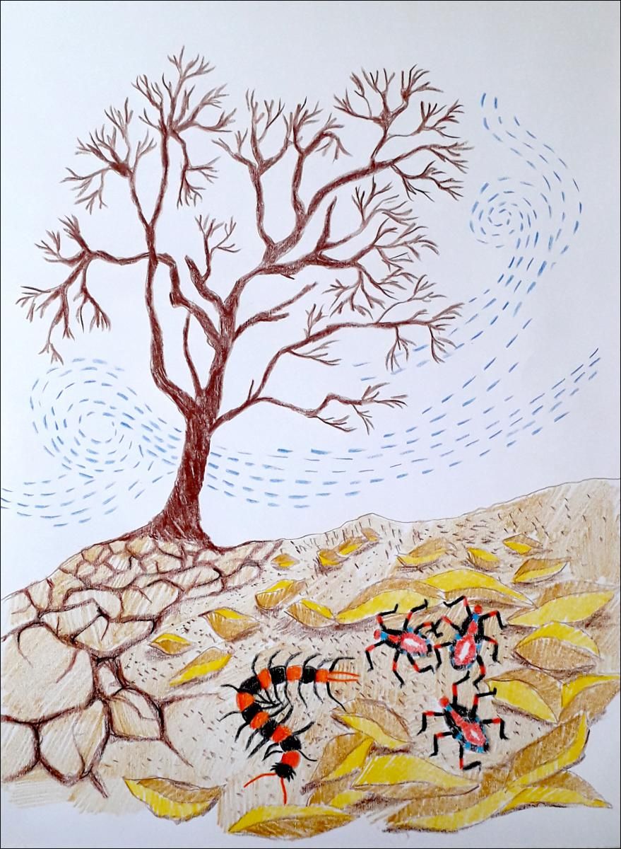 “आणखी एक गंमत आहे. ही पानं बघा कशी जमिनीवर सगळीकडे पसरली आहेत. त्यामुळे मातीला सुद्धा उन्हाचा त्रास होत नाही. कितीही ऊन असलं, तरी मातीत ओलावा टिकून राहतो. शिवाय अनेक किडे ह्या पानांच्या थराखाली छान राहतात. त्यांनासुद्धा उन्हाचा त्रास होत नाही”.