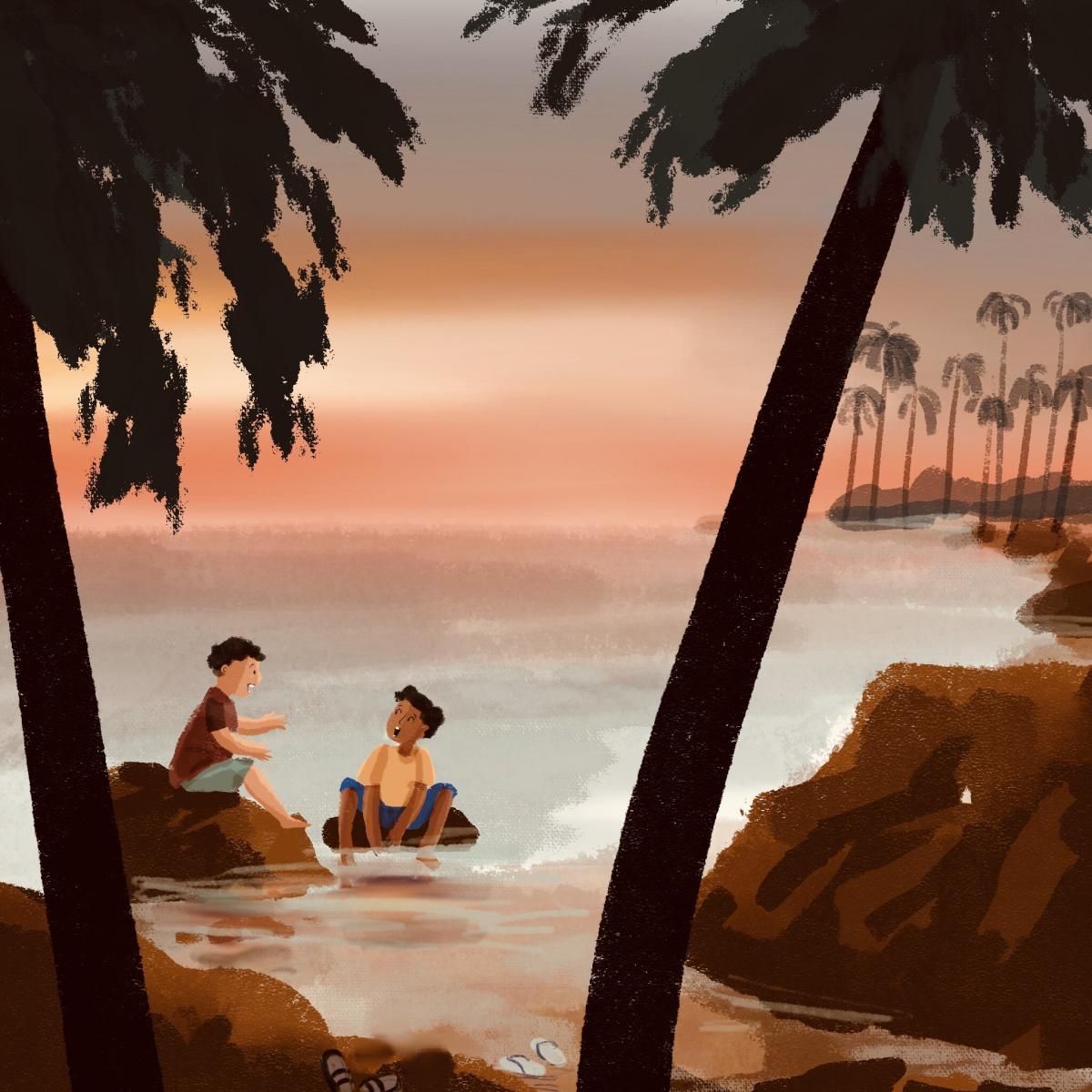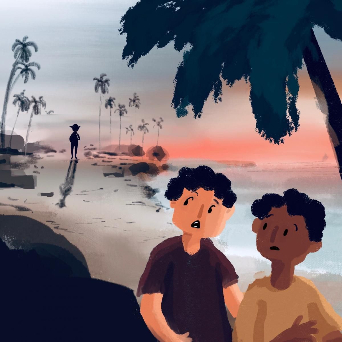 त्या खडकाच्या मागे त्यांच्याच वयाचा, गावात पूर्वी कधीही न बघितलेला, एक लहानसा मुलगा समुद्राच्या लाटांशी खेळत होता. आपल्याला आता नवा मित्र मिळाला म्हणून दोघेही आनंदले. धावत पळत त्याच्याजवळ गेले. दोघांनीही त्याला नीट निरखून पाहिलं.