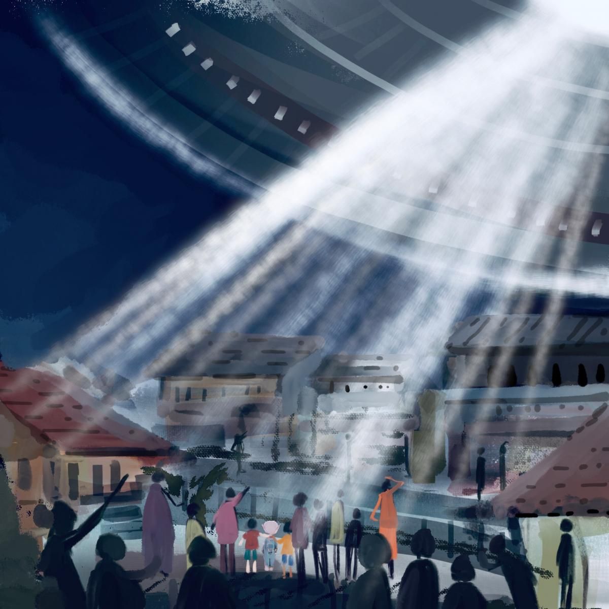 आणि नेमकं याच वेळेला आकाश उजळून आलं. एक तेजाची झळाळी आकाशाला आली. गावकऱ्यांचे डोळे प्रकाशाने दिपले. त्यांना नेमकं समजेना नेमकं काय होतंय. त्यांनी आकाशात पाहिलं तर तेजाची एक धार आकाशातून खाली येत होती. तबकडी सारखा तिचा आकार होता. गावकरी अचंबित होऊन बघत होते.