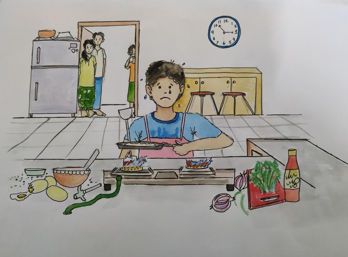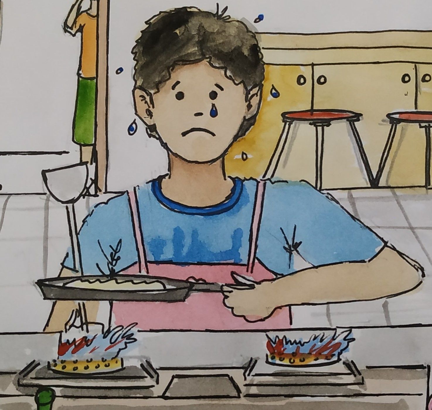पण आज काही माझं टास्क पूर्ण होईल असं वाटत नव्हतं. मी तवा शोधून त्यावर बॅटर ओतलं, तर ते वेगवेगळ्या दिशांना पसरायला लागलं. आईचं दरवेळी पर्फेक्ट गोल होतं आणि माझं मात्र इस्राईलच्या नकाशा सारखं होत होतं. ‘शीट!’ माझ्या डोळ्यासमोर माझ्या ‘सुपर-डूपर ब्रेकफास्ट’ चा ‘फ्लॉप शो’ होत होता आणि मी हातात उलथणं धरून हताशपणे तव्याकडे बघत होतो. आता तर ऑम्लेट धुरकट दिसायला लागलेलं कारण डोळ्यात पाणी जमा होत होतं. आता सगळे माझ्यावर हसणार आणि ‘उलुलूलु ‘करून मला ‘सिंपथी’ देणार असं चित्र माझ्या डोळ्यासमोर आलं, मग मात्र मला खूपच रडू यायला लागलं. पण आईनी शिकवलं आहे की, ‘हाती घ्याल ते तडीस न्या!’ म्हणजे काहीही झालं, कसंही झालं तरी टास्क पूर्ण करायचंच; म्हणून शर्टाच्या बाहीनी डोळे पुसत मी उलथणं घेऊन सरसावलो.