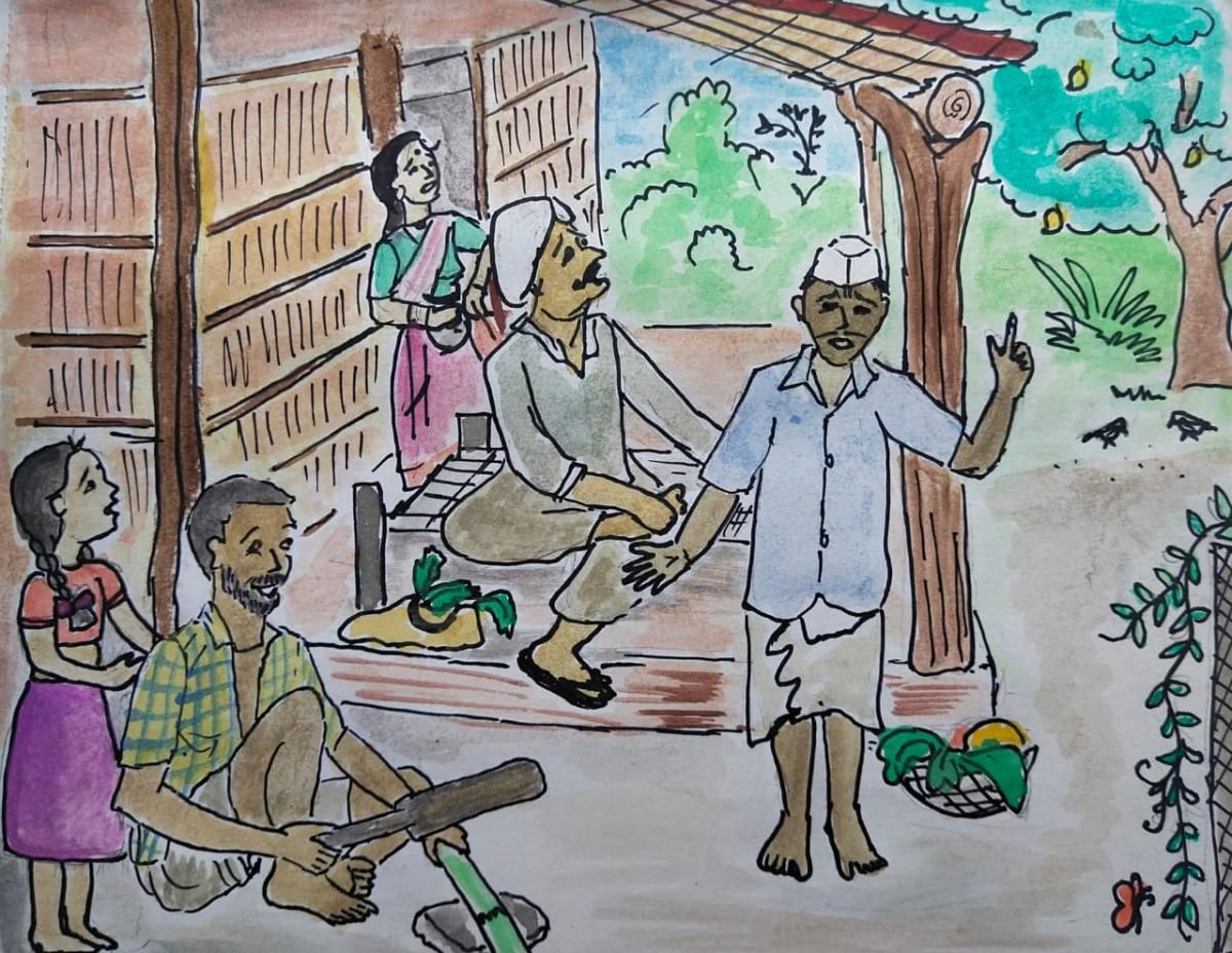 “आवं तानाजीकाका, तो आपला तोटा तर कायच करत नाय. आपन त्याला खोड केली नाय तर काहाला तो आपल्या वाटंला जातोय? आपन जीव लावला तर जनावरदिखिल काय करत नाय, तानाजीकाका”, सारिकाचा बाबा हसत म्हणाला.