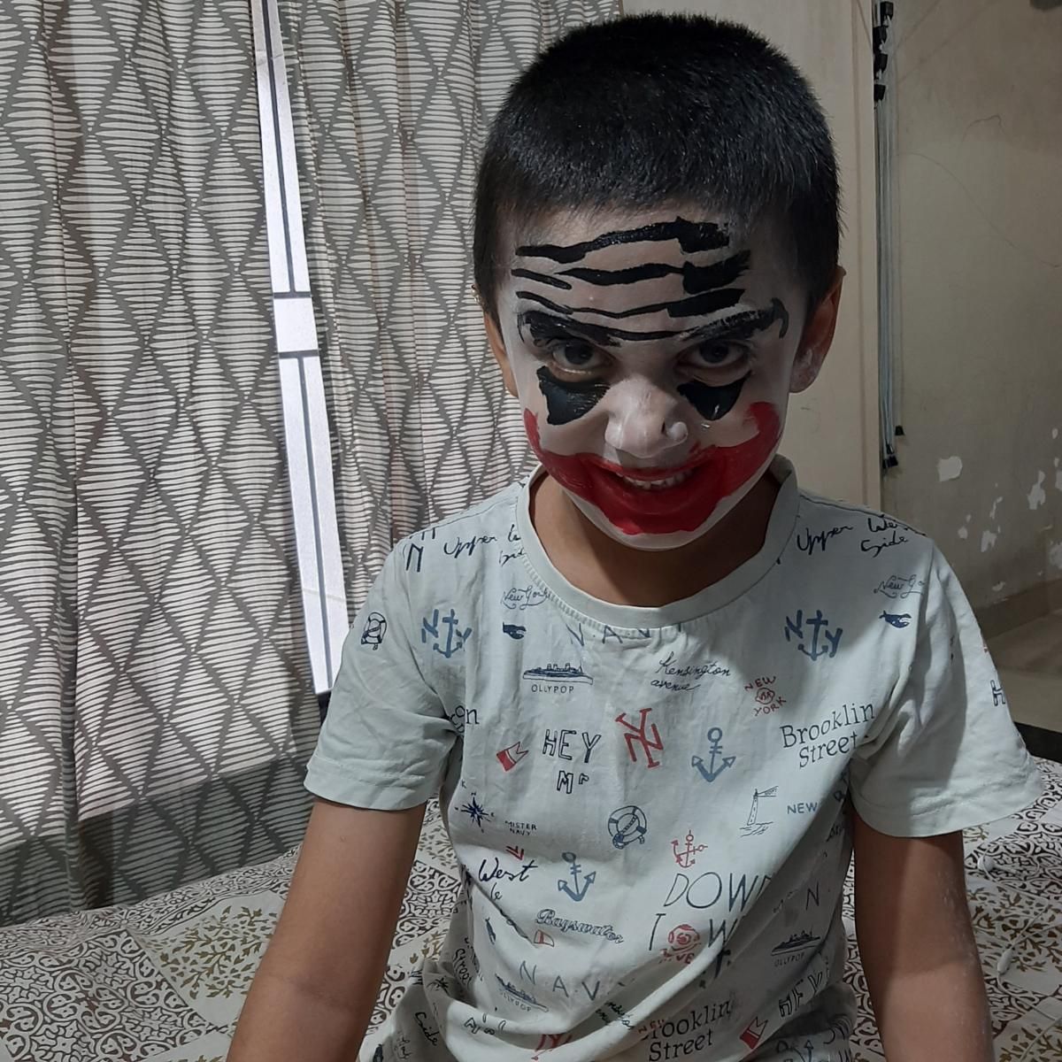 रेखाचित्र आणि चेहेऱ्यावरील रंगकाम: पंचम कुलकर्णी (इयत्ता १ली, आनंदक्षण)