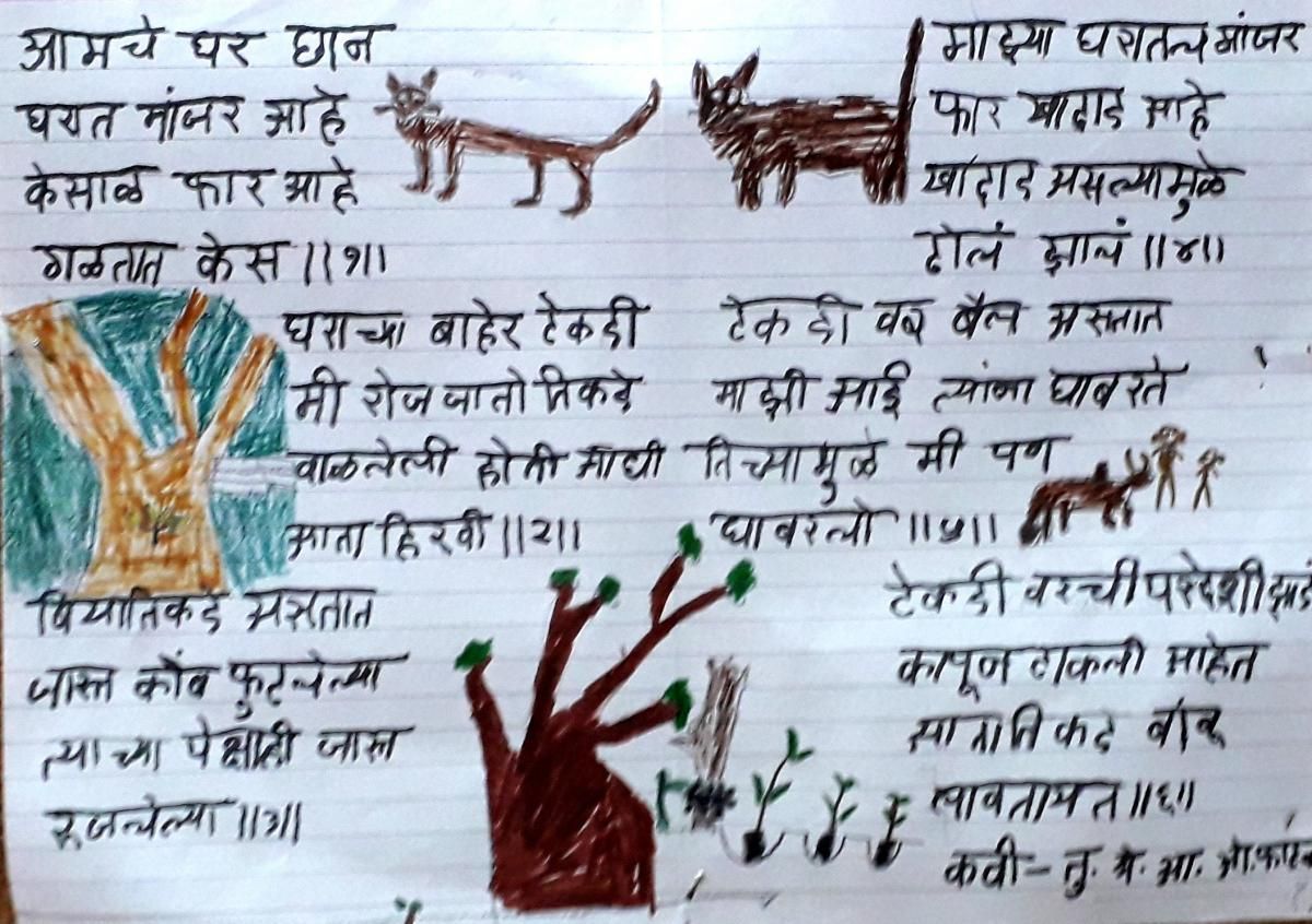 मूळ शब्द आणि चित्र यांची एकत्र मजा मुलांना मिळावी म्हणून कविता डिजिटल टंकन न करता प्रकाशित केली आहे