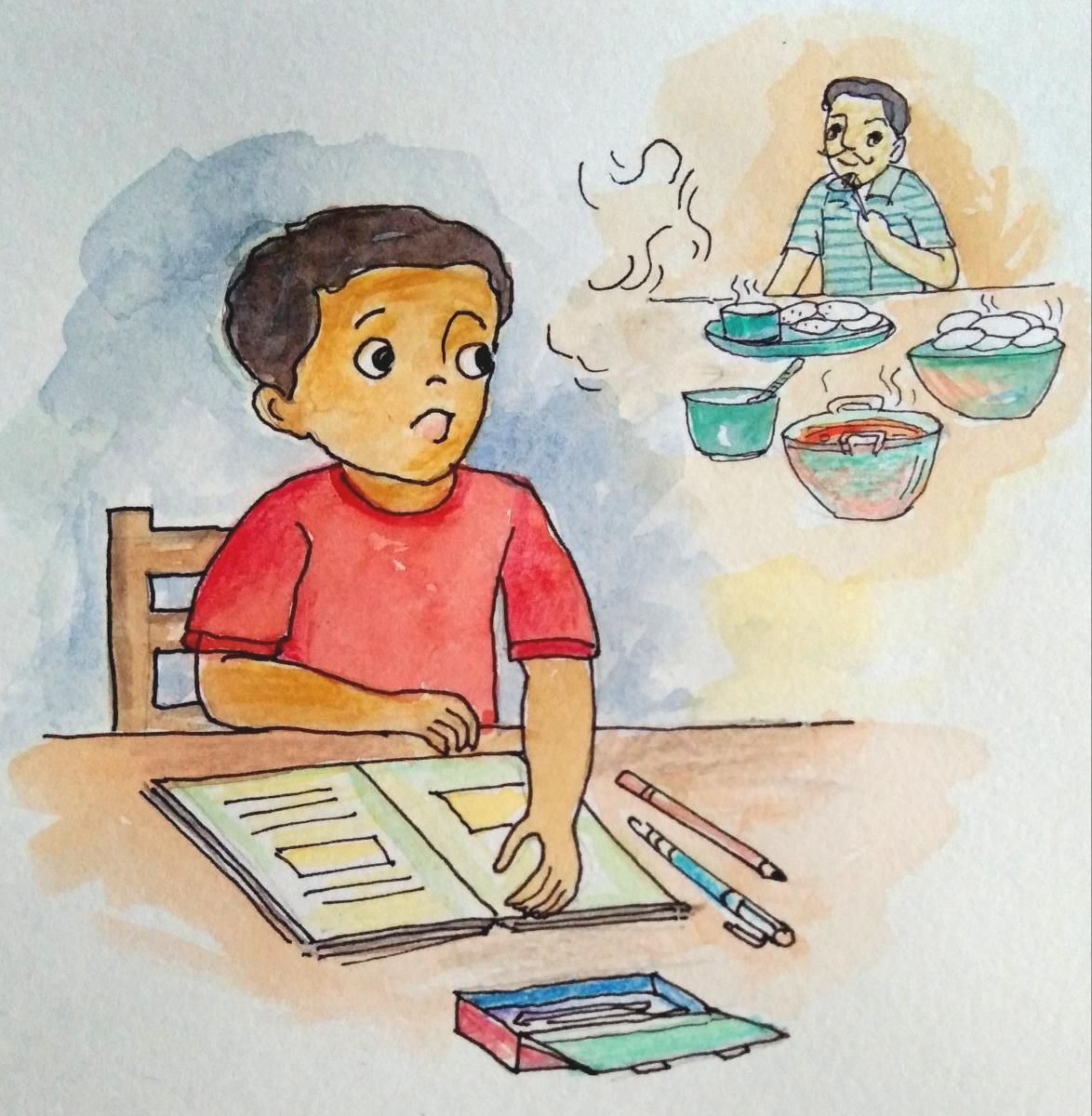 “चला, झालं सगळं तयार आईच्या तोंडातून हे वाक्य ऐकताच किती आनंद झाला! मी स्वतःहून चौघांसाठी चार ताटं, वाट्या, चमचे पटापट जमा केले. आईला वाढण्यासाठी मदत करू लागलो.